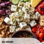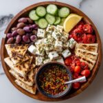 This mezze board pairs beautifully with light sides like a crisp Greek salad, roasted garlic hummus, or grilled vegetables. For something heartier, grilled lamb skewers or warm stuffed grape leaves complement the bites perfectly for a full Mediterranean feast.