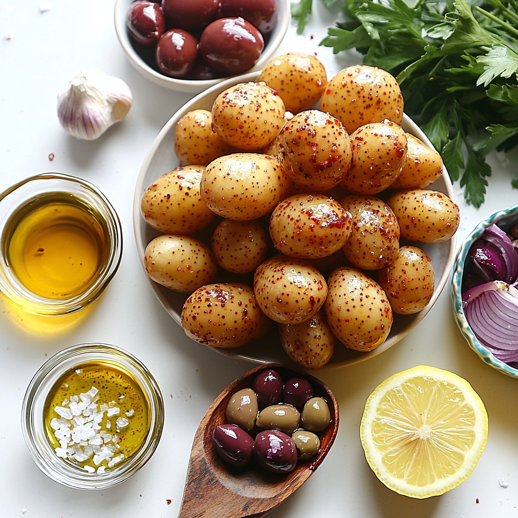 The magic of this Mediterranean Potato Salad Recipe lies in its straightforward, fresh ingredients that work together to create a harmony of flavors and textures. Each item is chosen for its ability to add brightness, balance, or a satisfying bite to the dish.