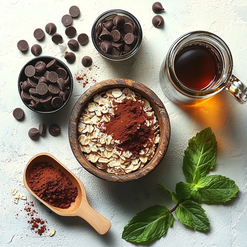 - Mix the Base: In a bowl, combine the rolled oats, almond milk, cocoa powder, maple syrup, and peppermint extract thoroughly until all ingredients are evenly incorporated.