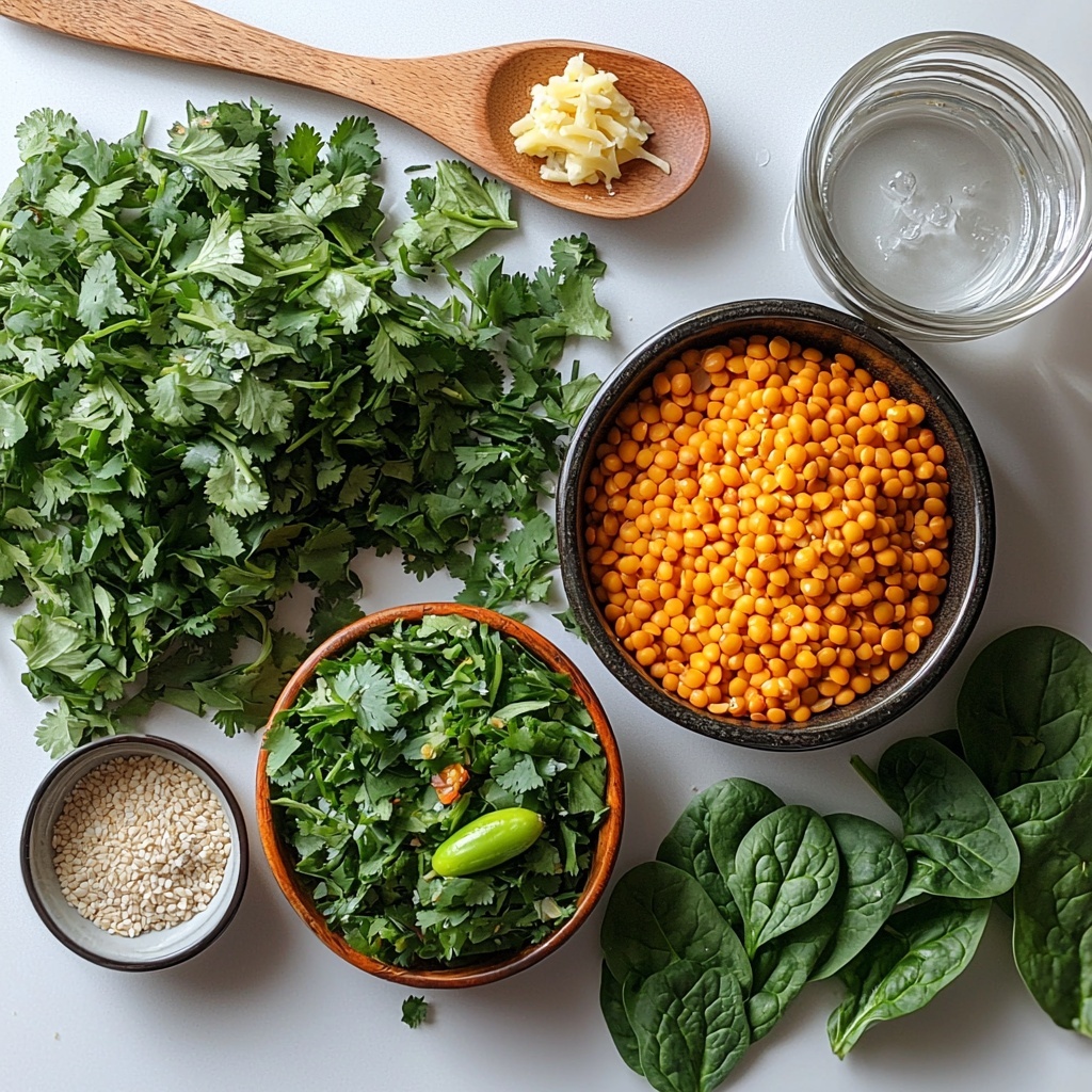 These ingredients are simple yet crucial to achieving the perfect balance of taste, texture, and color in your Moong Dal Chilla: Easy Savory Lentil Pancakes with Spinach and Cilantro Recipe. Each element adds charm, from the creamy lentils to the fresh brightness of the greens and spices.