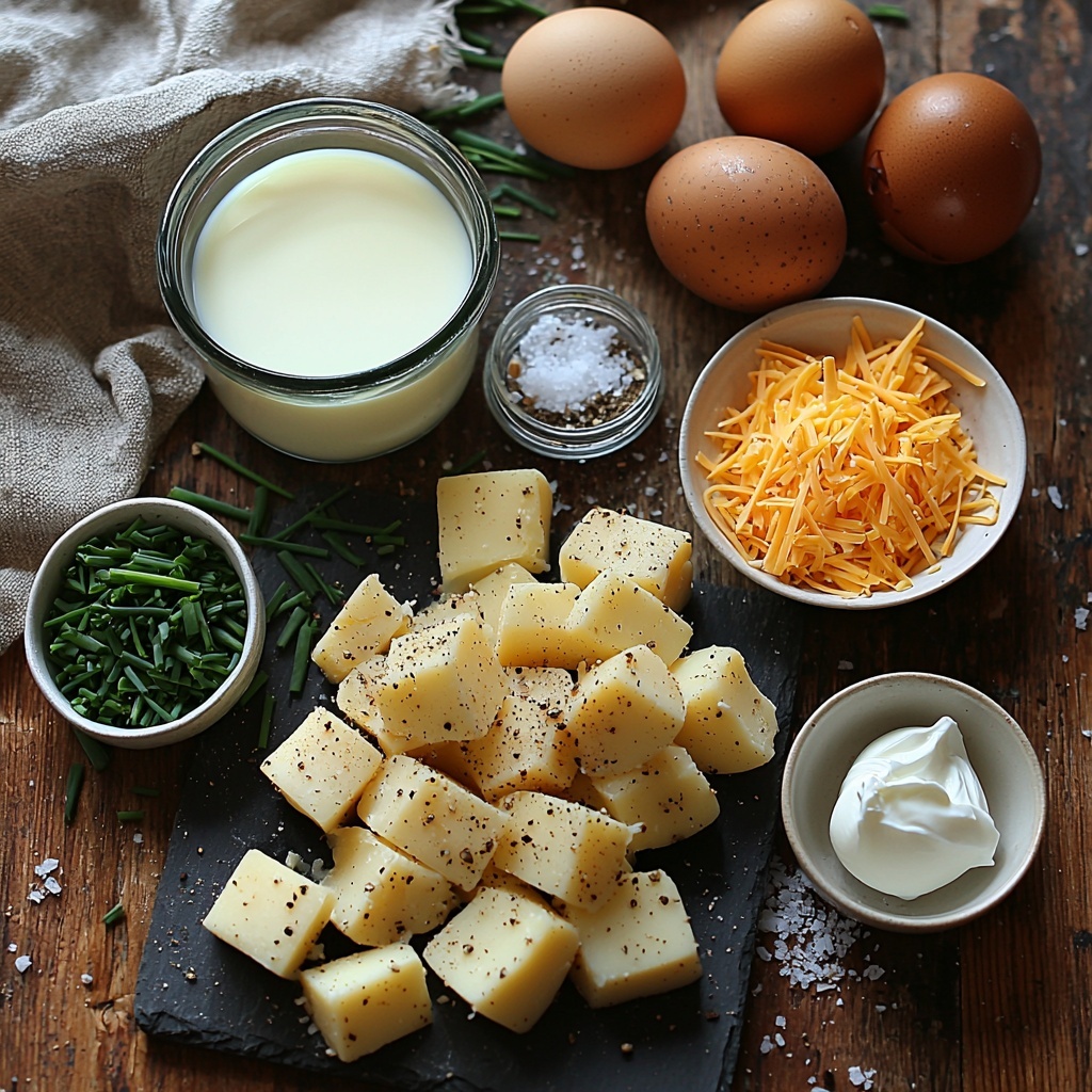 Gathering these simple but essential ingredients is the first step toward creating a deeply flavorful and creamy casserole. Each component plays a critical role, from the russet potatoes providing a fluffy base, to the sour cream adding tang and silkiness, and the cheese bringing that perfect, melty topping that adds both texture and color.