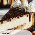 - Garnish and Serve: Before serving, optionally garnish the cheesecake with whipped cream, hot fudge, and melted peanut butter for extra flavor and visual appeal.