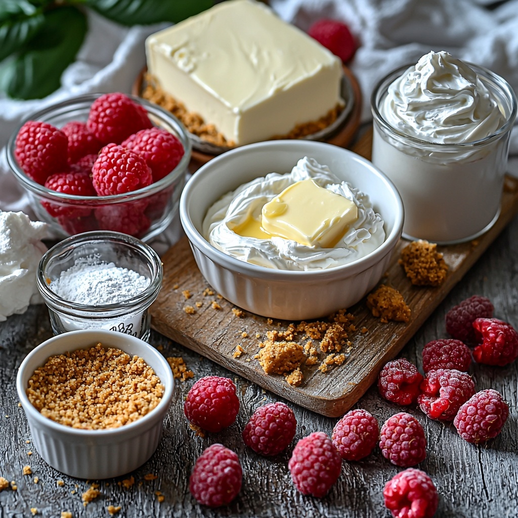 Let’s talk about the heart and soul of this cheesecake: simple, wholesome ingredients that each play a vital role. From the buttery graham cracker crust to the luscious cream cheese filling dotted with fresh raspberries, every element combines to give you a perfect balance of taste, texture, and color.
