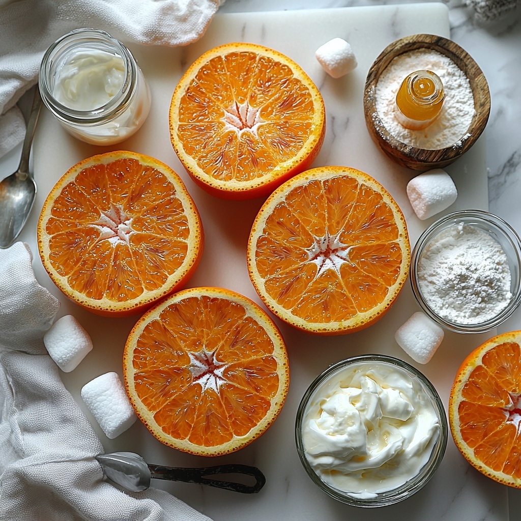 The beauty of this Orange Dreamsicle Salad Recipe lies in its simplicity, with a handful of accessible ingredients that work harmoniously to create a dish bursting with flavor, texture, and color. Each component plays a vital role—from the juicy citrus brightness of fresh oranges to the creamy richness of whipped cream and yogurt, finished with a sweet, chewy surprise from mini marshmallows.