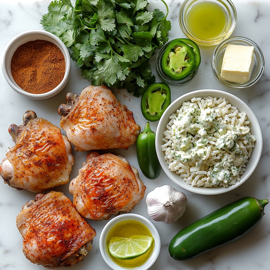 - Serve: Plate the roasted chicken thighs with a serving of the cilantro-lime rice and drizzle the vibrant green sauce over the chicken or serve on the side.
