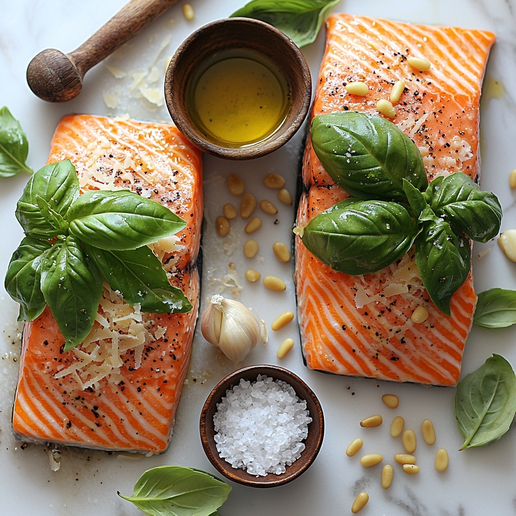 - Coat with Pesto: Generously spread the prepared basil pesto over the top of each salmon fillet, ensuring an even coating to maximize flavor.