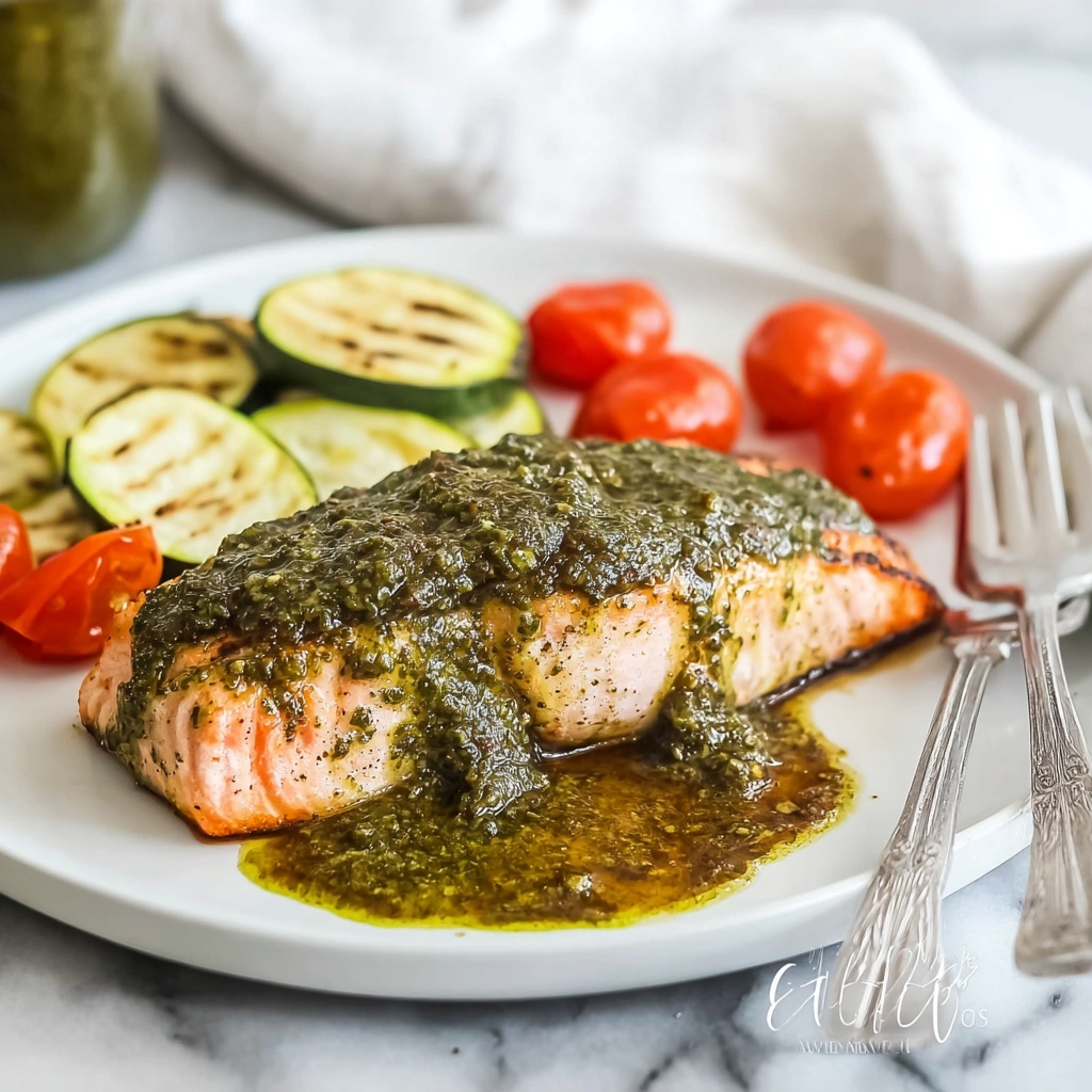 For a beautiful presentation, plate the salmon over a bed of fluffy quinoa or herbed couscous. Drizzle with an extra spoonful of pesto or a light aioli for a restaurant-worthy finish. Serving family-style on a large platter surrounded by colorful veggies invites everyone to dig in and share the joy.