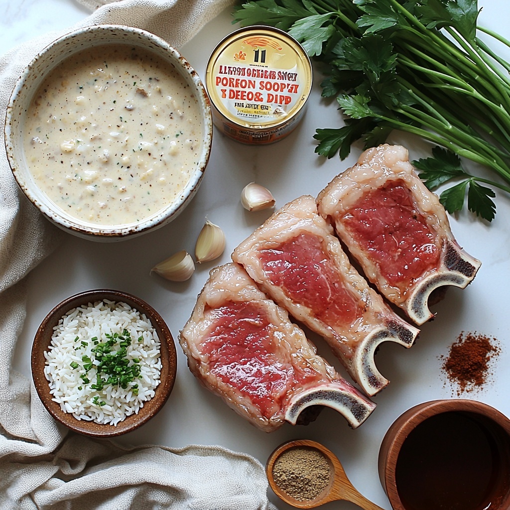 Getting your ingredients ready for this Pork Chops and Rice Casserole Recipe is surprisingly simple, yet each one is essential in creating the dish’s rich flavor and satisfying texture. The combination of creamy soup, fragrant seasonings, and hearty pork comes together beautifully to make every bite memorable.