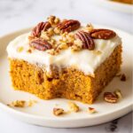 This Pumpkin Snacking Cake is a moist, spiced treat perfect for autumn or any time you crave the cozy flavors of pumpkin pie in cake form. Featuring a tender pumpkin-infused crumb and a rich cream cheese frosting topped with candied pecans, it’s a delightful dessert that’s easy to make and perfect for sharing with friends and family.