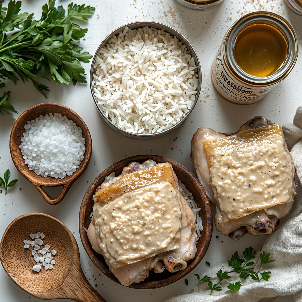 Want to impress your guests? Serve the chicken thighs individually plated atop generous scoops of the creamy rice. Or try plating it family-style in the baking dish so everyone can dig in family-style, sharing that warm feeling this recipe inspires. For a festive touch, drizzle a little melted butter or a squeeze of lemon juice over the chicken just before serving.