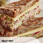 This Real N’awlins Muffuletta is a classic New Orleans sandwich featuring a flavorful olive salad packed with a mix of olives, vegetables, and spices combined with layers of Italian cold cuts and cheeses, all served on Italian bread. The sandwich is perfect for gatherings, offering a bold and savory taste that embodies authentic Southern deli flavors.