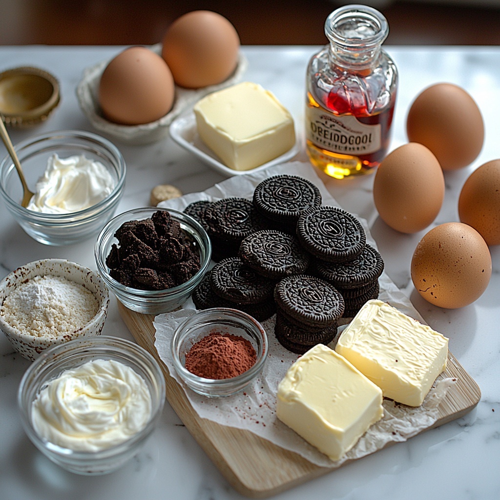 These ingredients might look simple at first glance, but each one plays a crucial role in creating the perfect harmony of flavor, texture, and that iconic red velvet hue. From the crunchy crushed Oreos forming the crust to the luscious cream cheese filling, every item helps take this dessert from good to unforgettable.