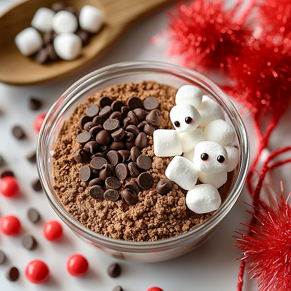 Next, sprinkle in as many mini chocolate chips as you like—these will add delightful melty bursts of chocolate. Follow with a generous handful of miniature marshmallows; these will float on the surface once prepared, creating that classic comforting top layer that everyone loves.