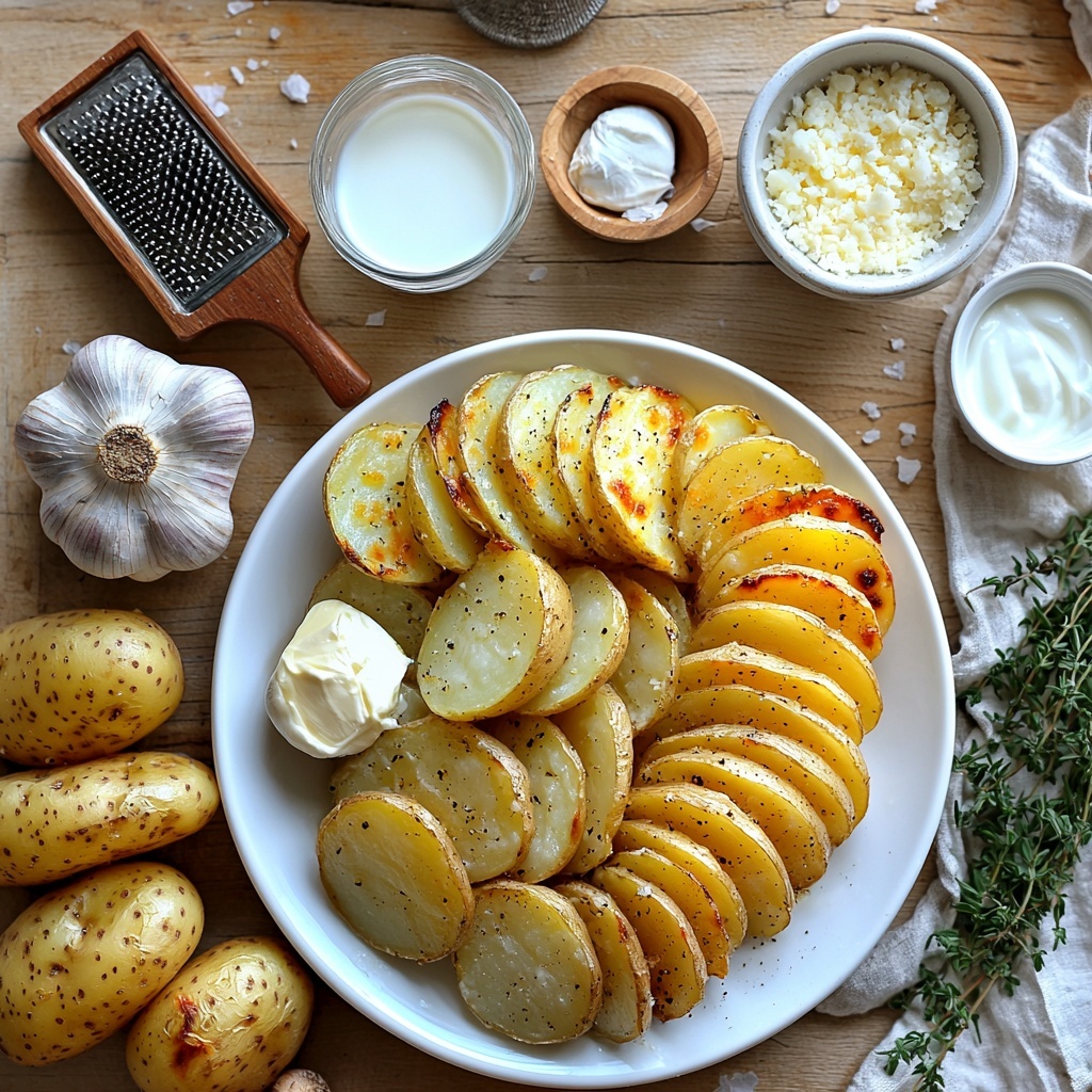 These ingredients are wonderfully straightforward yet come together to create layers of flavor and texture. Each one plays a key role — from the earthy earthiness of the starchy potatoes to the aromatic burst of fresh thyme, and the creamy decadence of melted Gruyère.