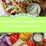 A delicious and easy-to-make Sheet Pan Chicken Pita with Herby Ranch, featuring tender roasted chicken strips, colorful bell peppers, and red onions served in warm pita bread with fresh lettuce, tomatoes, and a creamy homemade herby ranch dressing. Perfect for a quick weeknight dinner with Mediterranean-American flavors.