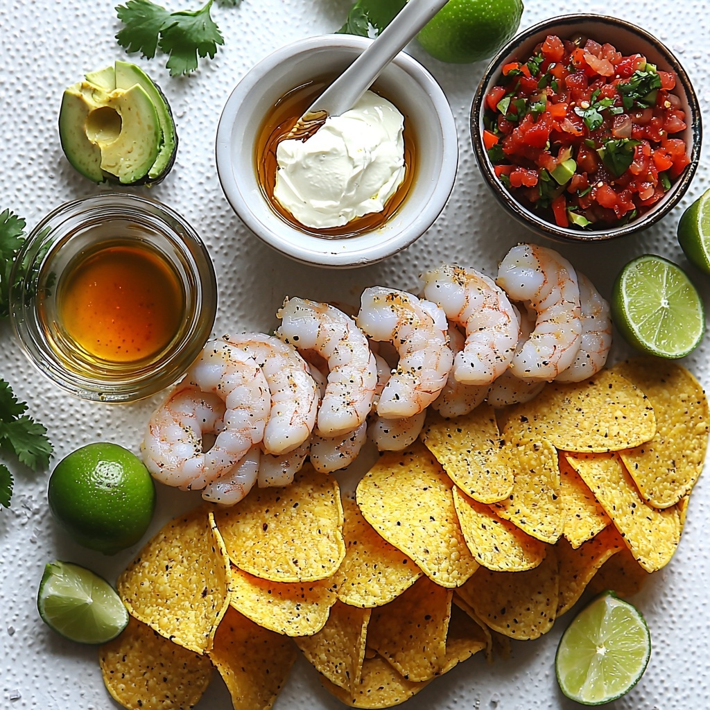 Grab each scoop-style tortilla chip and start layering: spread about one teaspoon of sour cream, followed by a teaspoon of diced or mashed avocado. Top with one cooked shrimp, then spoon on a bit of salsa or Pico de Gallo. For that last flourish, add fresh cilantro leaves or a squeeze of lime if you’re feeling fancy. These bite-sized treats are not only beautiful but pack a deliciously complex punch in every mouthful.