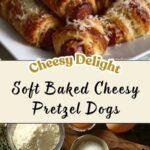 Soft Baked Cheesy Pretzel Dogs are irresistible snacks featuring juicy hot dogs wrapped in a soft, chewy pretzel dough. Coated with coarse sea salt and baked to golden perfection, these treats combine the comforting flavors of a pretzel with melty cheese for a delightful twist—perfect for parties, game days, or a fun family dinner.