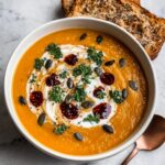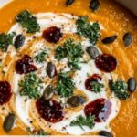Fresh cilantro or parsley is the go-to garnish for this soup, adding a lively burst of color and herbaceous brightness that cuts through the creaminess. You can also try a drizzle of coconut milk or a sprinkle of toasted pumpkin seeds for an extra textural surprise.