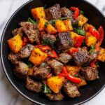 If you’re craving a dish that’s bursting with bold flavors and vibrant colors, you’re going to love this Steak Bites with Sweet Potatoes and Peppers Recipe. It’s a perfect blend of tender, juicy steak cubes, sweet and caramelized potatoes, and crunchy bell peppers all coming together in one skillet. This meal is not only a feast for your taste buds but also comes together quickly, making it an ideal dinner for busy weeknights or casual weekend gatherings.