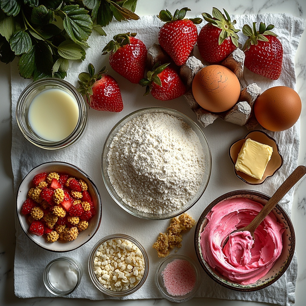 Getting these Strawberry Crunch Cupcakes just right is all about simple, fresh ingredients that harmonize beautifully. Each item plays an essential part in delivering the perfect texture, flavor, and appearance that makes these cupcakes a standout.