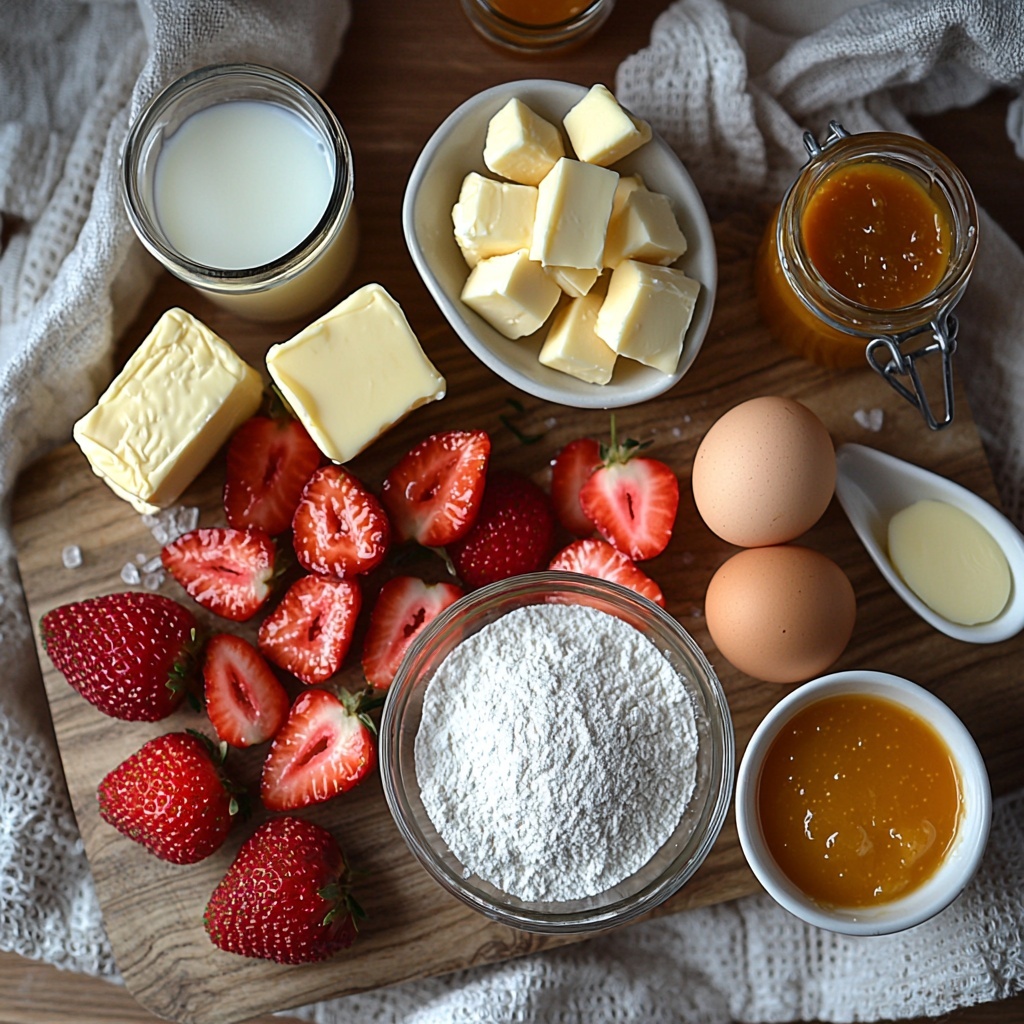 This recipe calls for simple, everyday ingredients that come together beautifully to create a stunning dessert. Each component, from the buttery crust to the fragrant vanilla custard and fresh strawberries, plays a vital role in delivering the perfect taste, texture, and look.