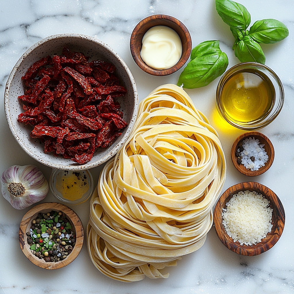 Getting the ingredients right is crucial for this Sun-Dried Tomato Cream Pasta Recipe because each one plays its own important role in building layers of flavor, creaminess, and a perfect sauce texture.