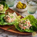 Lay out your butter lettuce leaves on a serving platter with grace. Spoon the tuna salad evenly onto each leaf, creating neat, generous wraps that showcase the vibrant filling.