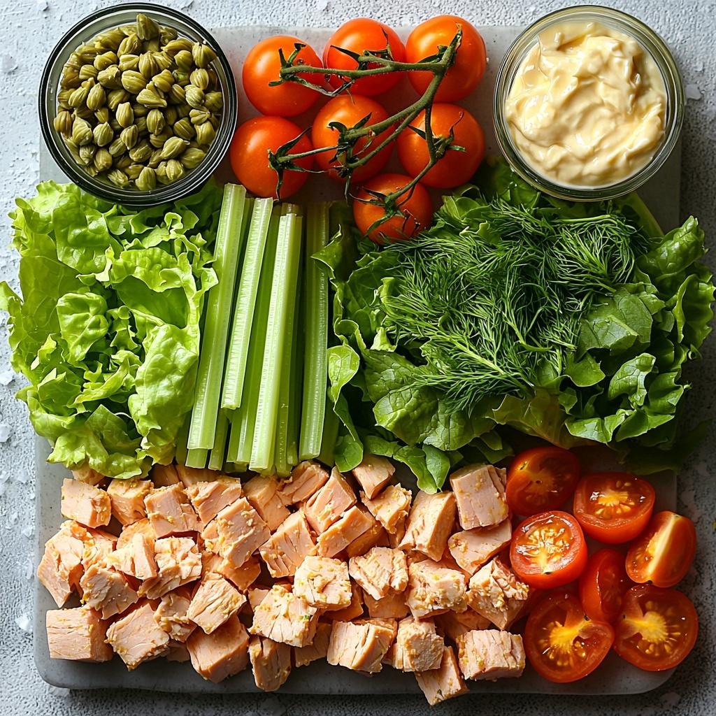 - Assemble Wraps: Lay out the butter lettuce leaves neatly on a serving platter. Spoon the tuna salad evenly onto each leaf, creating individual wraps.