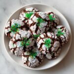 These Vegan Grinch Crinkle Cookies are a festive and delicious holiday treat featuring a rich cocoa base, packed with green sprinkles or peppermint candies for a cheerful twist. Made with solid coconut oil and almond milk, these cookies are perfectly chewy in the center with a delicate crackled sugar exterior, making them the ultimate plant-based Christmas cookie.