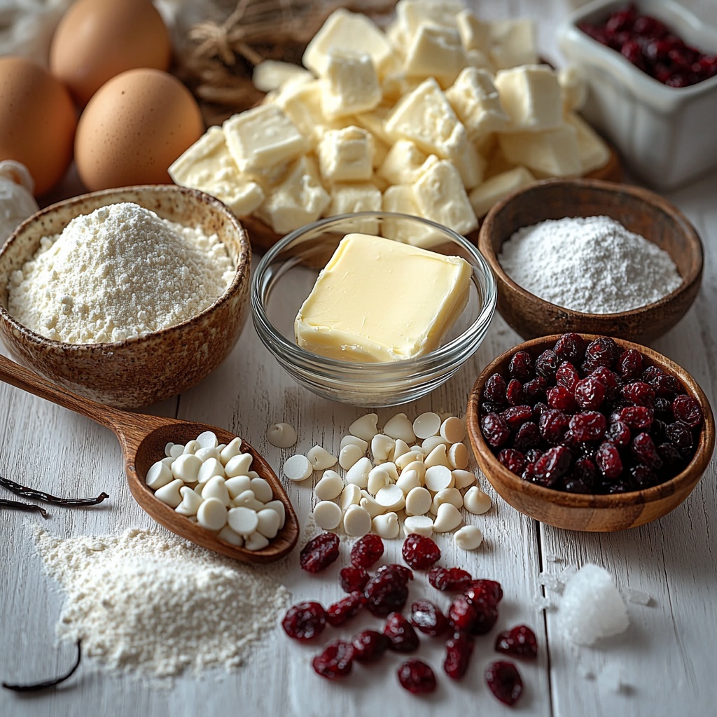These ingredients are delightfully simple but each plays a crucial role in building the rich flavor, ideal texture, and festive look of the White Chocolate Cranberry Christmas Cookies Recipe. From creamy butter to tangy cranberries, every item adds something special.