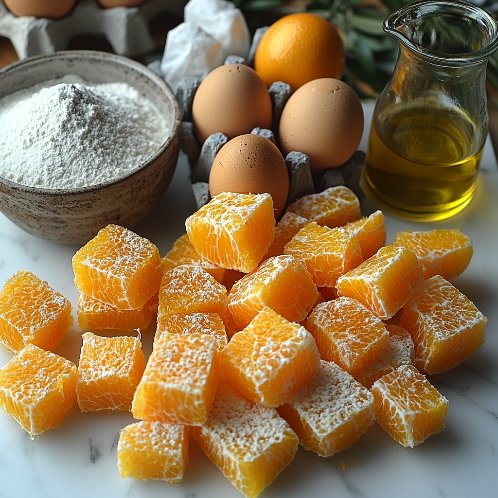 - Sugar: Sweetens the batter while balancing the slight bitterness of the orange peel.